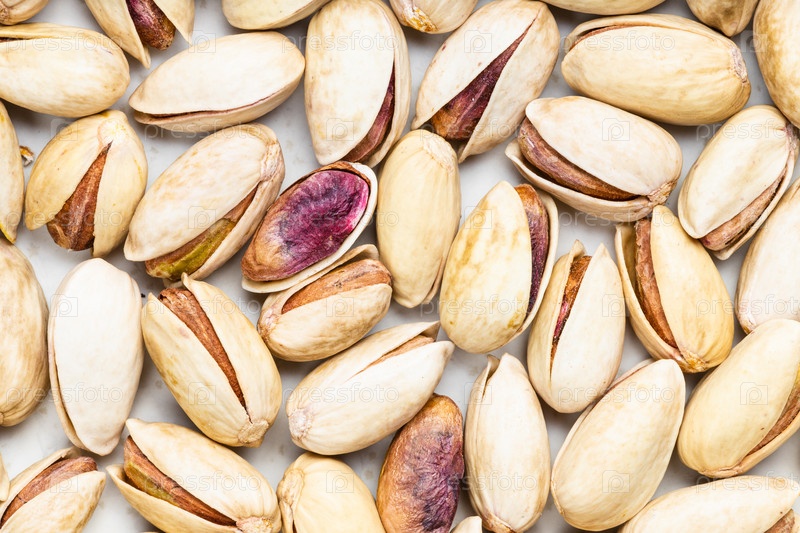 Фон - много очищенных и спелых фисташек
