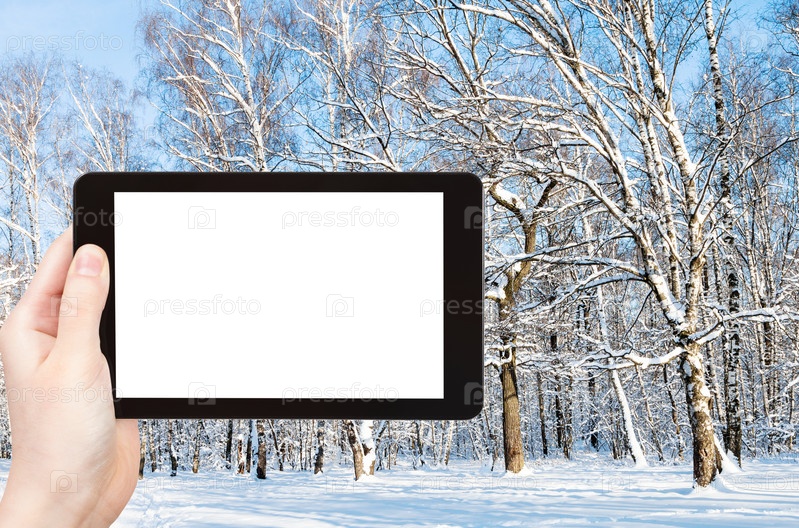 Вид на лесную поляну в солнечный зимний день