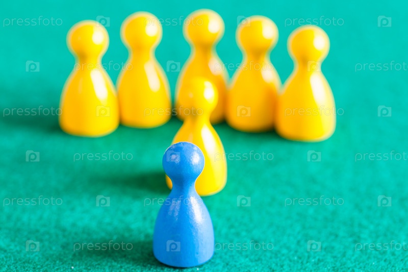 Одна синяя пешка перед несколькими желтыми пешками