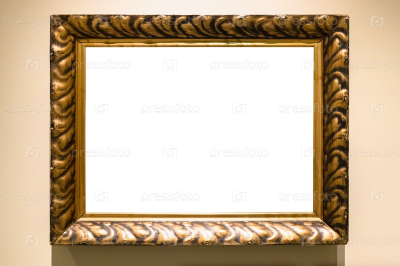 Старая резная широкая бронзовая рамка на коричневой стене