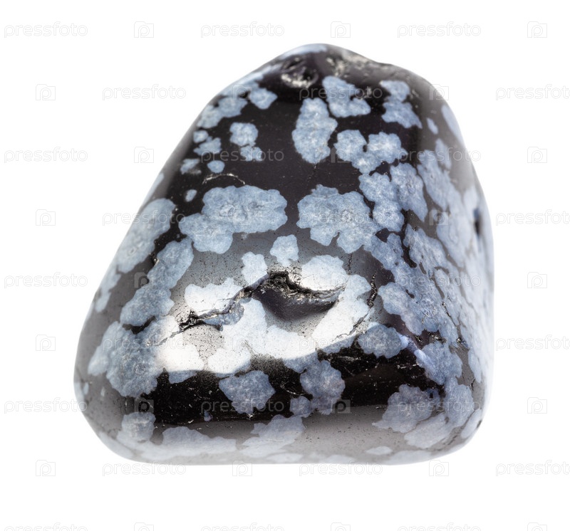 В снежинках драгоценный камень обсидиан изолированный