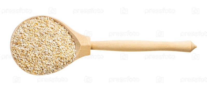 Вид сверху на ложку с дробленой ячменной крупой