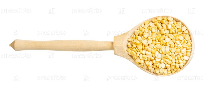 Вид сверху на сырые бобы мунг дал в ложке изолированы