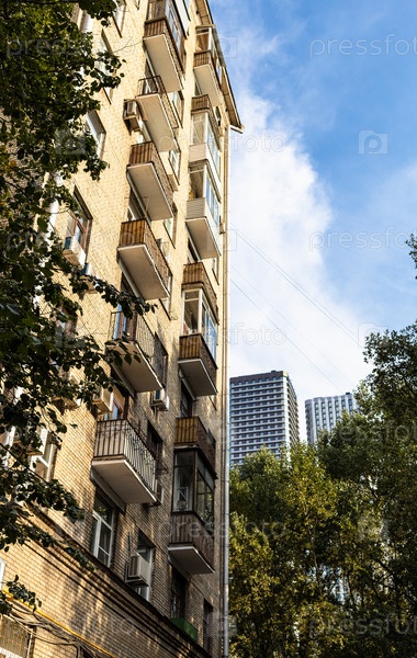 Фасад высотного кирпичного жилого дома