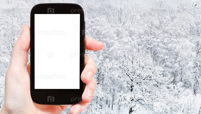 Панорамный вид на заснеженную дубовую рощу в лесу