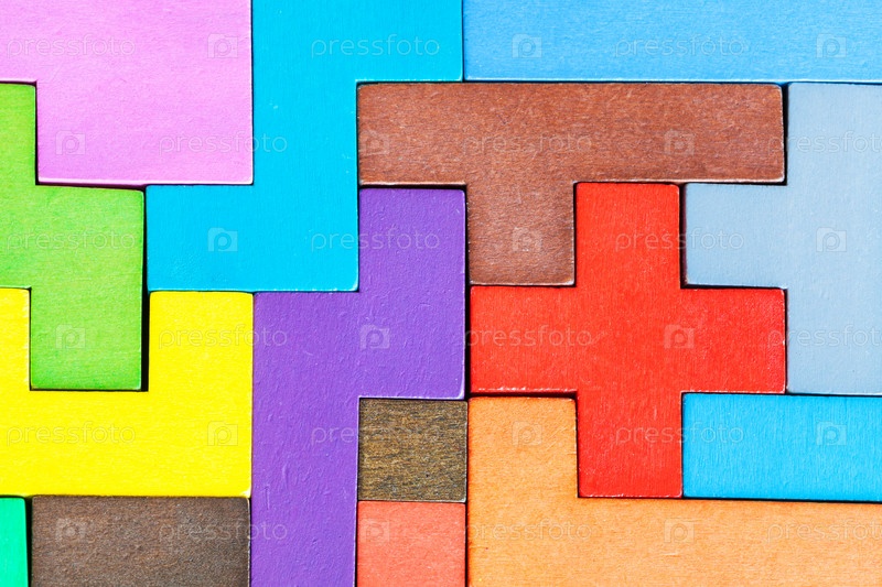 Вид сверху собранной головоломки из деревянных пентамино