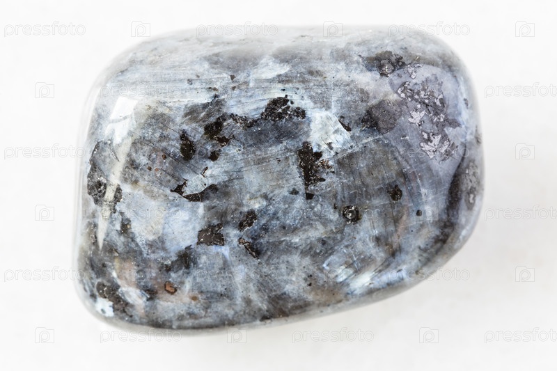 Полированный ларвикит (лабрадорит) камень на белом