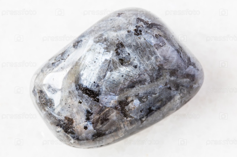 Упавший ларвикит (лабрадорит) камень на белом