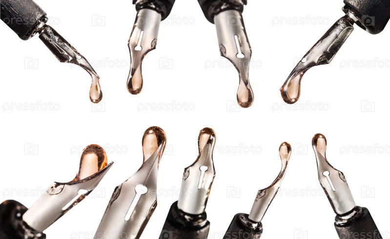 Набор из стальных перьев с розовыми чернилами крупным планом