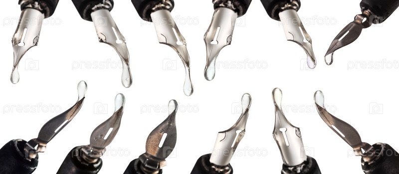 Набор из стальных перьев с прозрачными каплями крупным планом