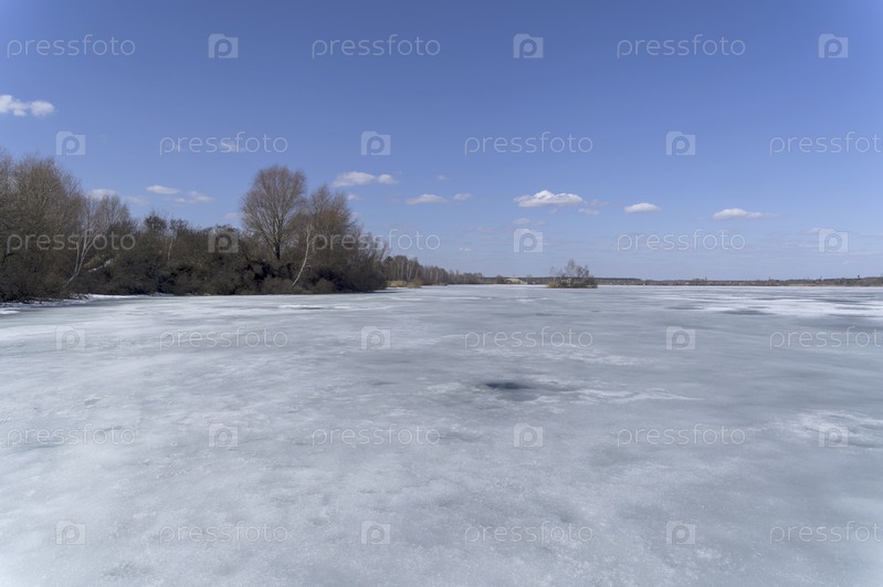 Тающий лед на озере. Подмосковье, Россия. Солнечный день в апреле