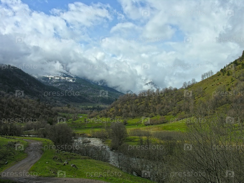Ущелье Аксаут в начале мая. Карачаево-Черкессия, Северный Кавказ, Россия