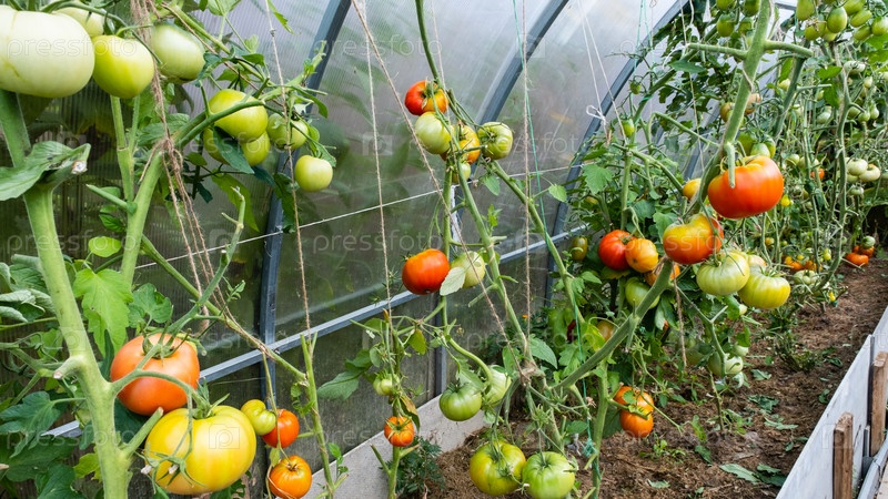 Спелые и незрелые помидоры в теплице