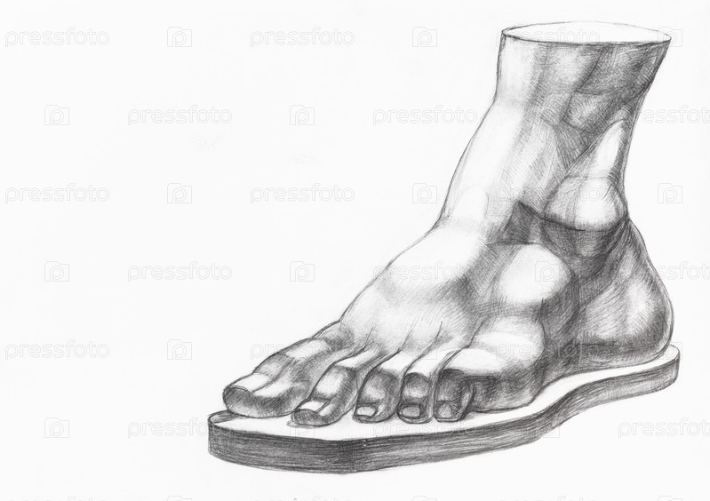 Карандашный набросок гипсовой повязки мужской стопы