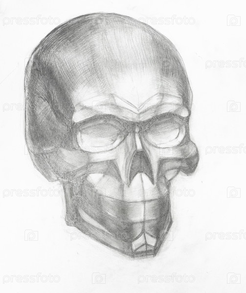 Нарисованный вручную гипсовый слепок человеческого черепа
