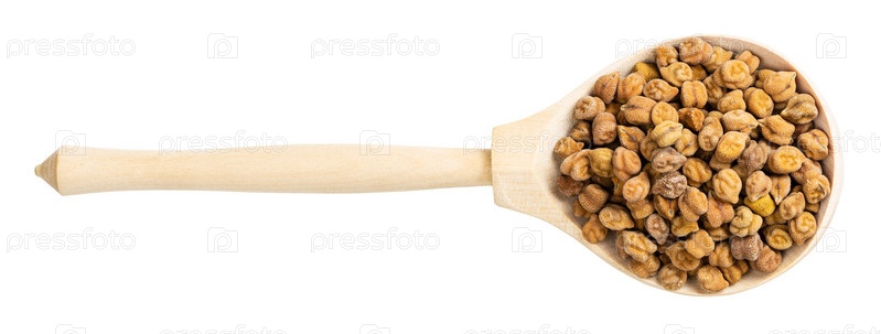 Вид сверху на сырой черный нут в деревянной ложке