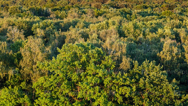 Над видом на дуб в лесу летним вечером
