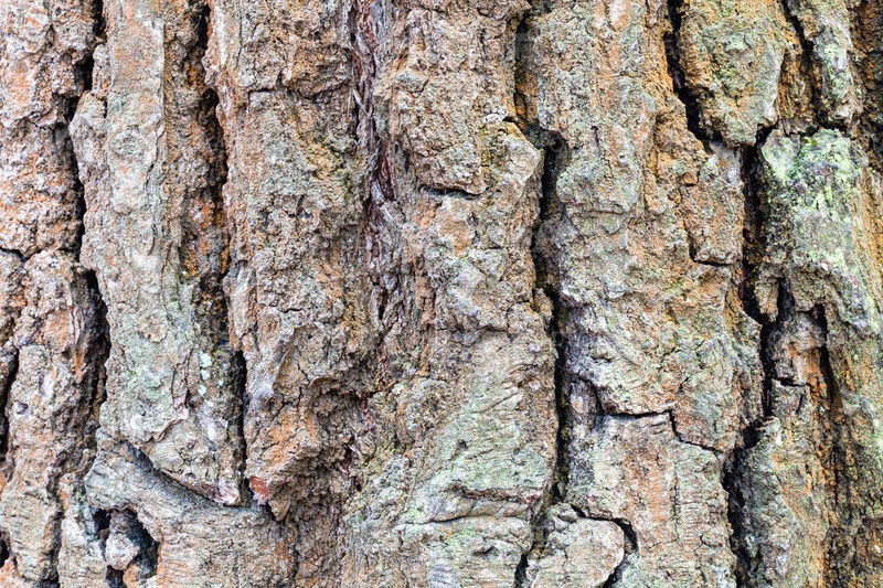 Морщинистая кора на зрелом стволе дуба крупным планом