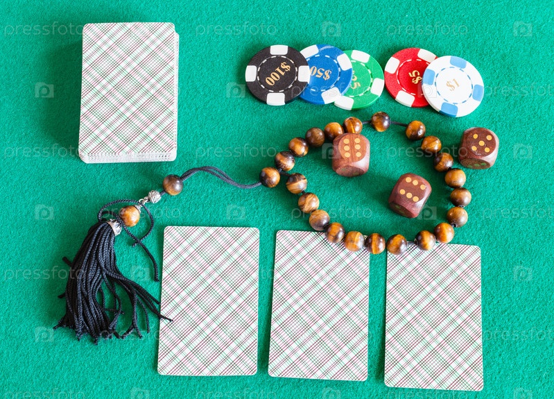 Карточные колоды, игральные кости, жетоны казино и бусы для беспокойства