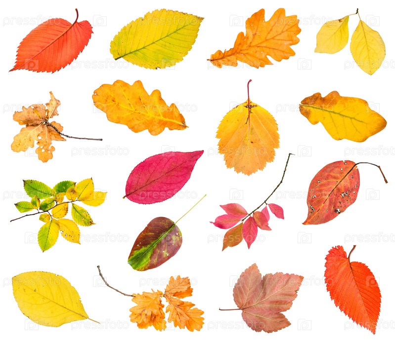 Различные опавшие листья и ветки изолированы