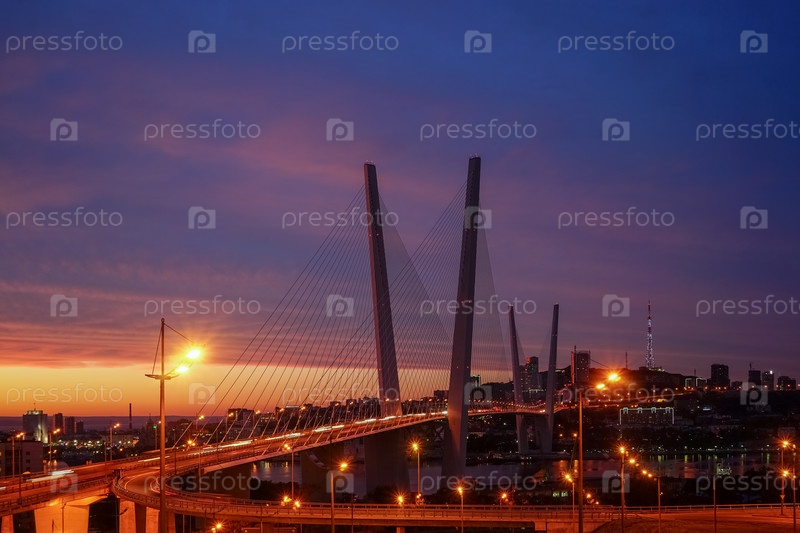 Золотой мост на фоне великолепного драматического неба на закате