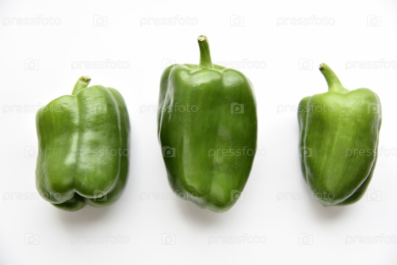 Сочные зеленые и желтые плоды перца на белом фоне. Красивый блестящий и вкусный перец