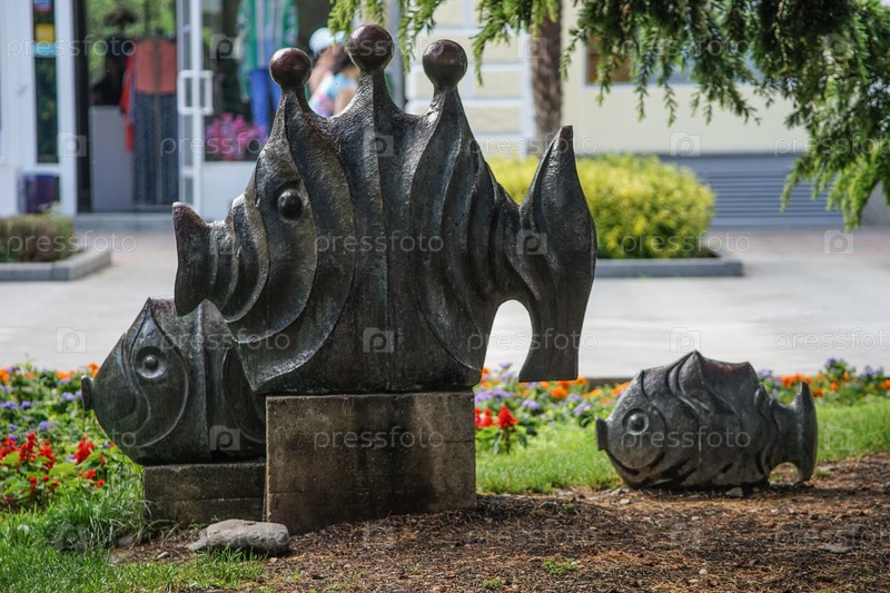 Ялта, Крым-3 июня 2016 г.: скульптуры рыб на улице