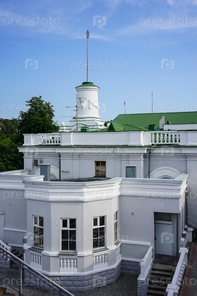 Севастополь, Крым-15 июня 2015 г.: Городской пейзаж с видом на здание железнодорожного вокзала