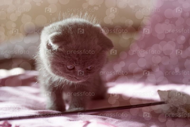 Портрет маленького серого шотландского котенка