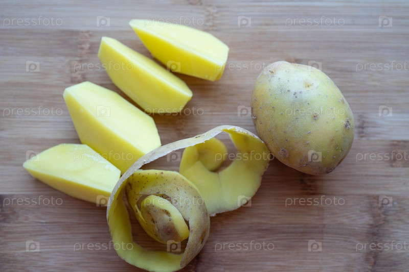Сырой картофель с кожурой на разделочной доске