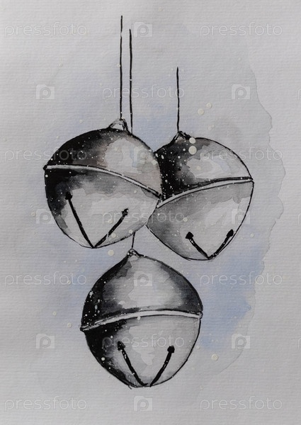 Акварельный рисунок Серебрянные колокольчики Санта Клауса