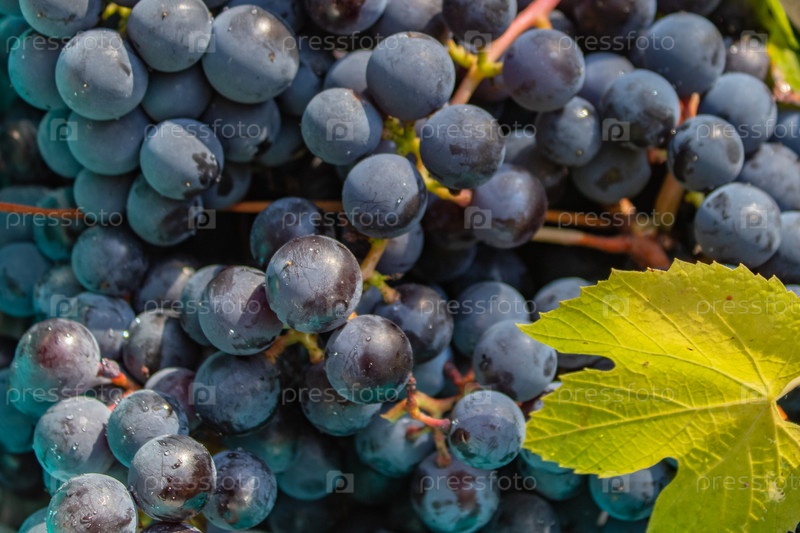 Урожай спелого винограда собирают ранней осенью. Вид сверху