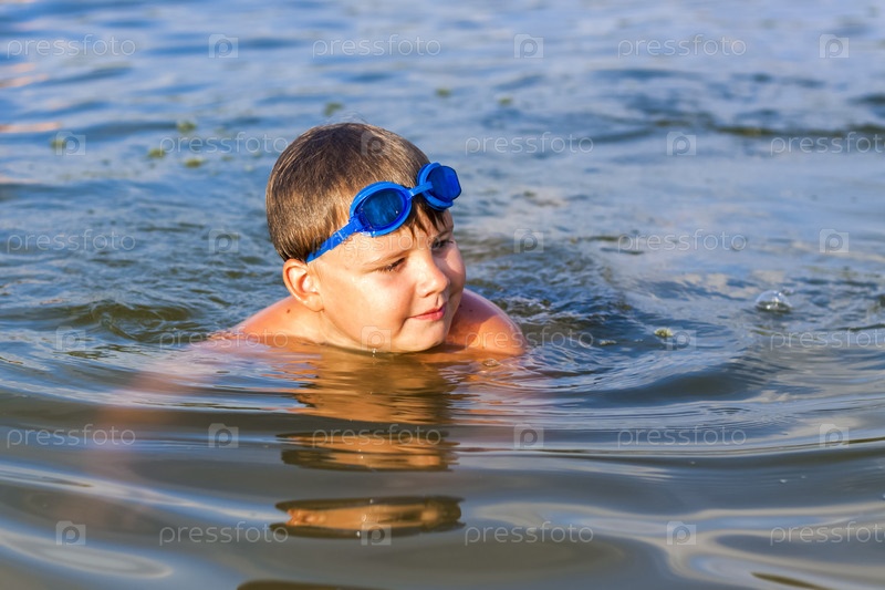 Счастливый ребенок плавает в реке в очень жаркий летний день. Купайтесь в водоемах. Счастливая семья веселится и летом плещется в воде