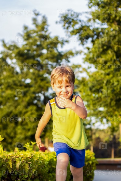 Ребенок проводит время в парке, он очень доволен. Веселитесь и наслаждайтесь летним днем. Прогулки и отдых