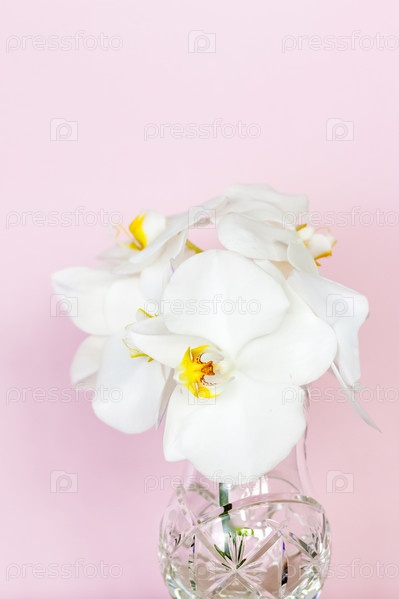 Красивые орхидеи в вазе на розовом фоне. фаленопсис крупным планом. Баннер, панорама с местом для текста