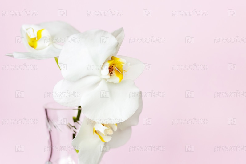 Красивые орхидеи в вазе на розовом фоне. фаленопсис крупным планом. Баннер, панорама с местом для текста