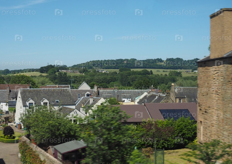 Панорама сельской местности из поезда между Эдинбургом и Глазго