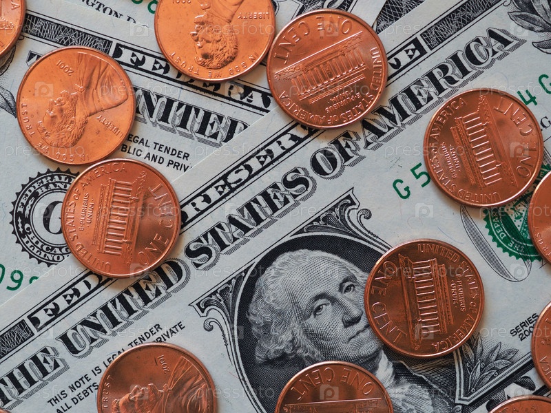 Долларовые купюры и монеты (USD), валюта США