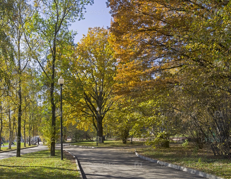 Красивый солнечный осенний день в парке. Теплостановский лесопарк, Москва. Октябрь