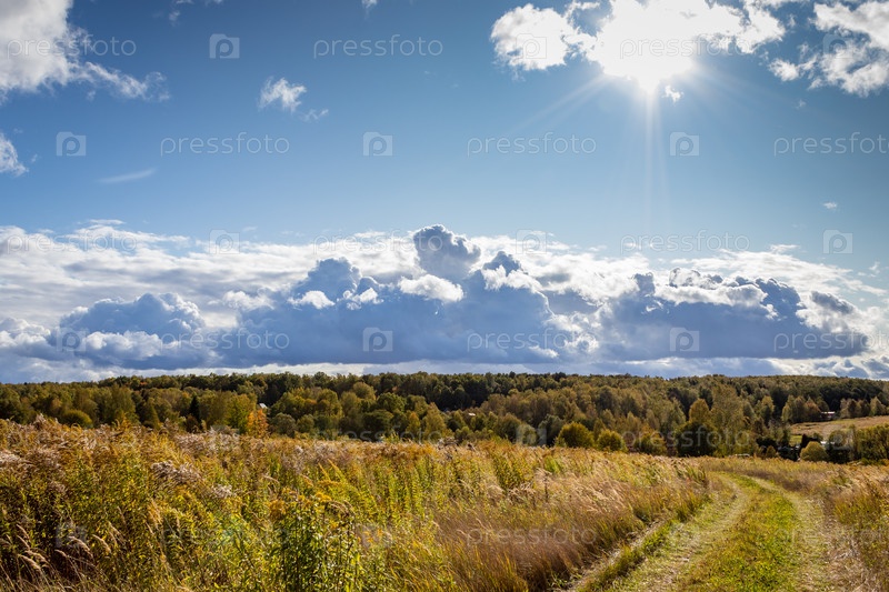Сельский пейзаж, демонстрирующий красоту Центральной России ранней осенью. Тульская область, Россия
