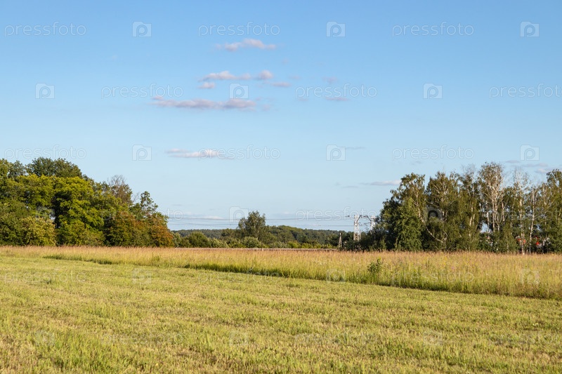 Поле с сеном, прекрасный ясный летний день. Тульская область, Россия