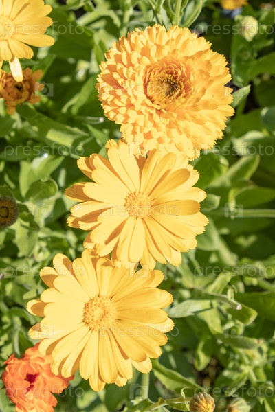 Календула яркая полевая, бархатцы, лекарственный цветок календулы. крупным планом