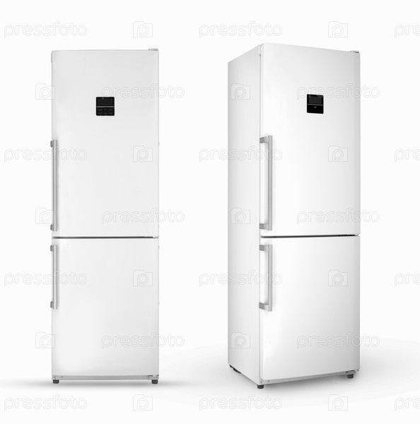 Бытовой холодильник на белом фоне