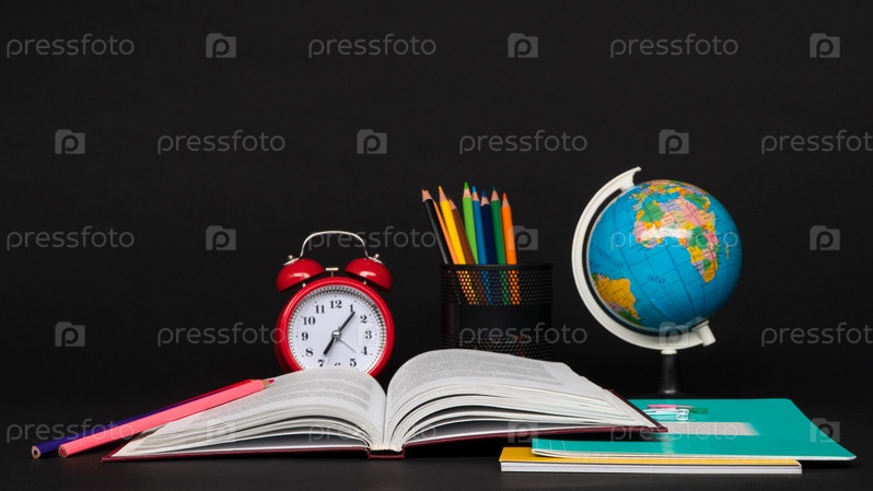 Школьные принадлежности на черном фоне