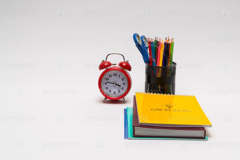 Школьные принадлежности на белом фоне