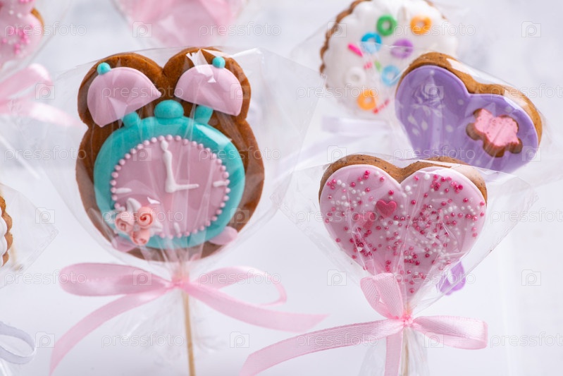 Набор красочных и сладких печенек на палочке