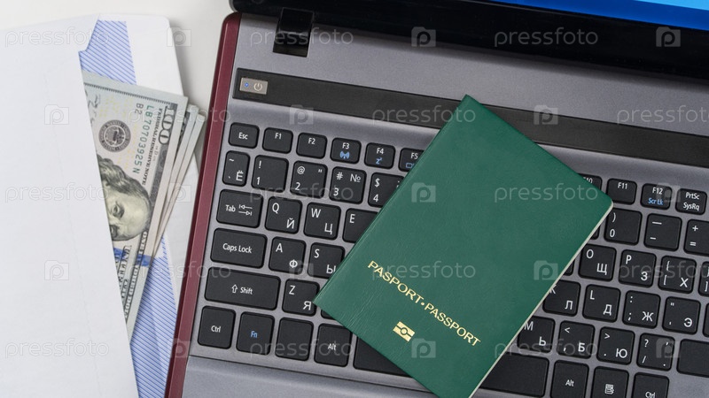 Зеленый паспорт на клавиатуре