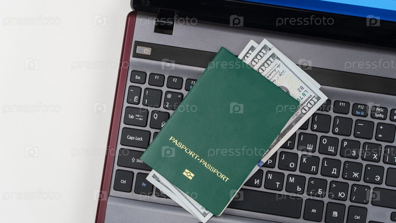 Зеленый паспорт на клавиатуре