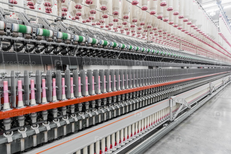 Катушки с нитками на текстильной фабрике
