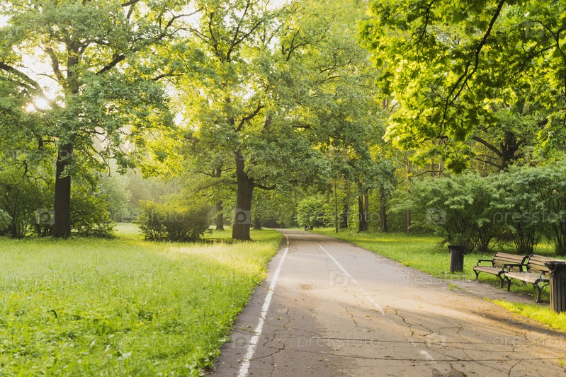 Дорога в парке солнечным утром